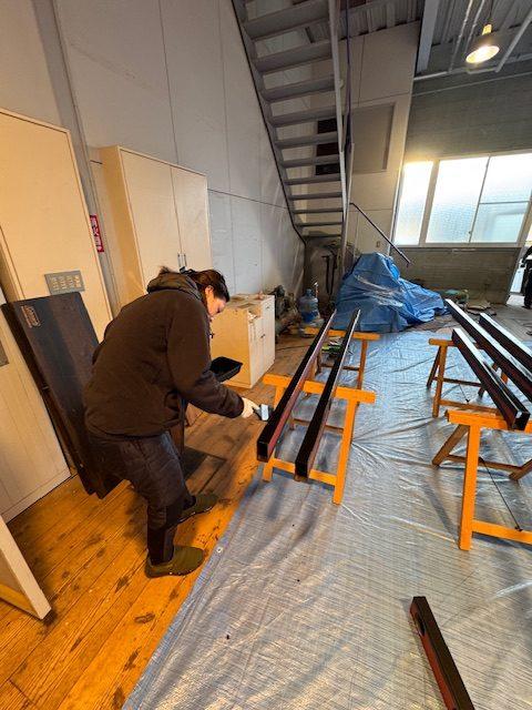 ニスを塗って床の色と合うようにしました👍🏻