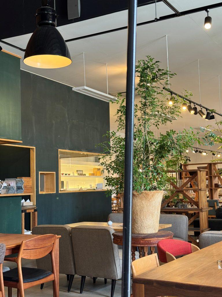 深いグリーンの壁が印象的で、植物もたくさんあって落ち着く雰囲気でした😌